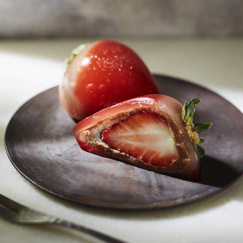 プルッとしたとろけるような食感とフルーツの甘味と酸味が上手く合わさった、まさに新しい和菓子。「ルビーのいちごDAIFUKU」は瞬く間に「jewelry box」の人気商品になり、多い時にはなんと1日1万5000個もつくるという。